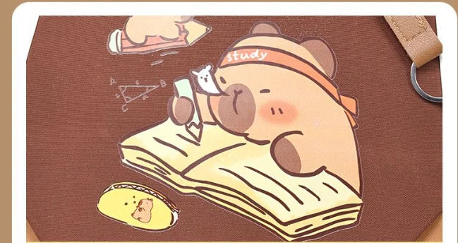 Waterproof Capybara Backpack or Schoolbag for Kids and Teenagers with Plush Keychain