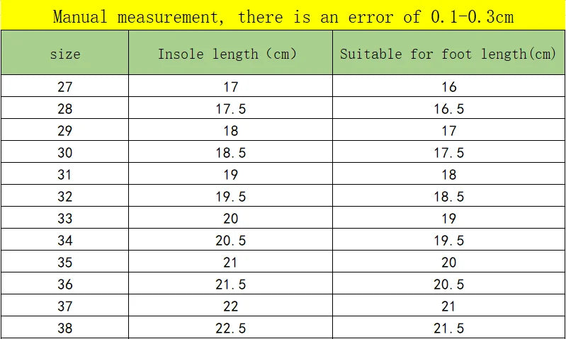 Please measure your child’s foot length before ordering.